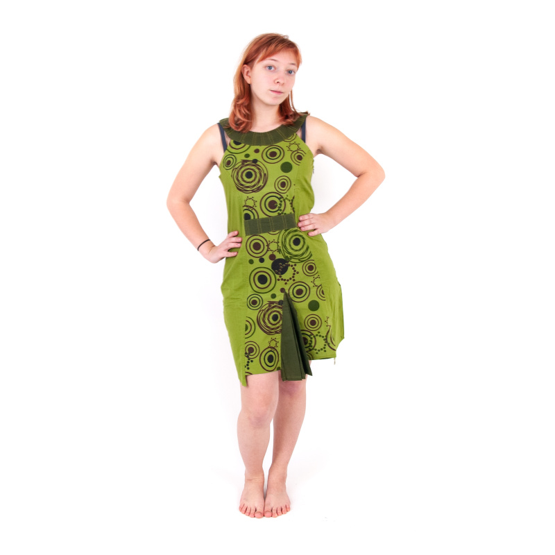 Lehce extravagantní krátké šaty Esha s originálně řešeným výstřihem, velikost L, zelená