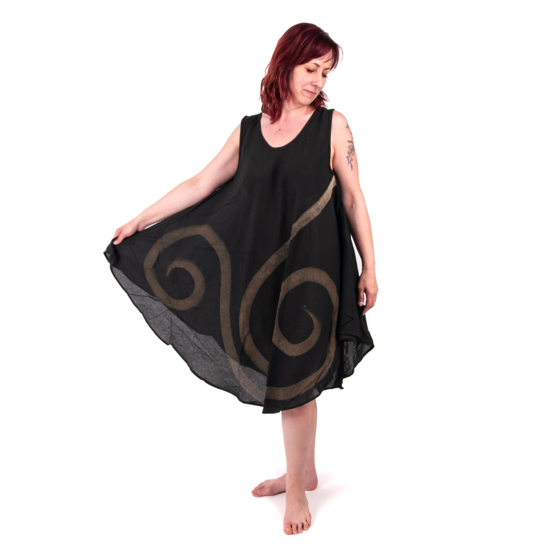 Delší šaty Spirals v tmavě zelené barvě ušité v Thajsku mají mnoho předností:
