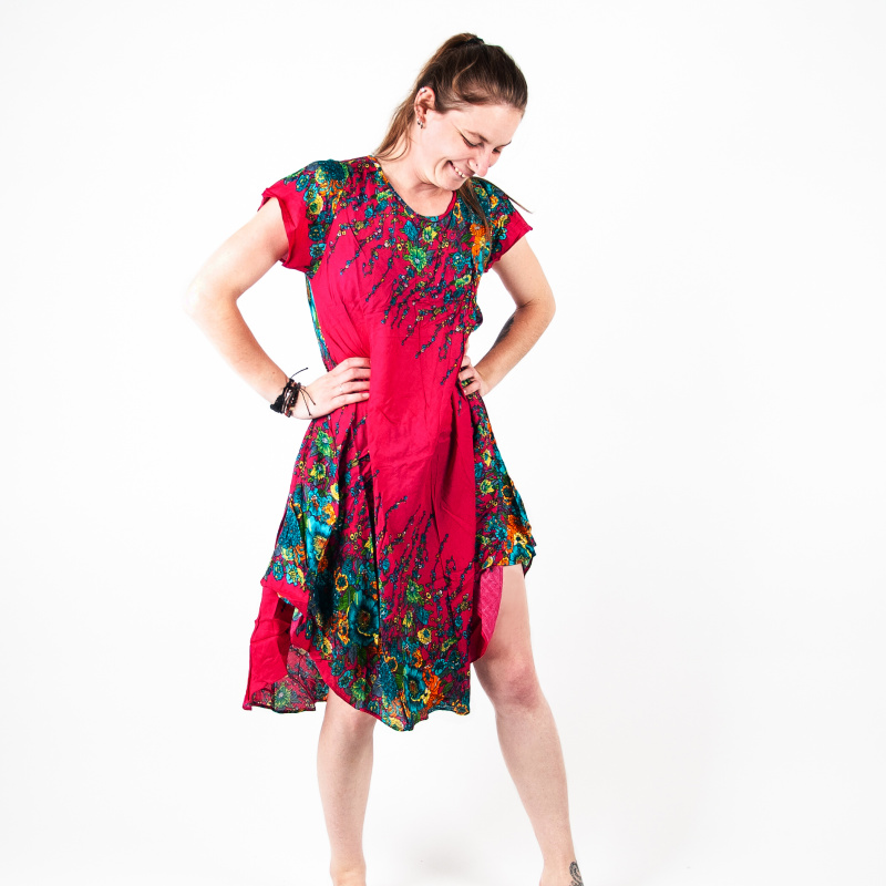 Delší šaty Summer Flowers v růžové barvě ušité v Thajsku mají mnoho předností: