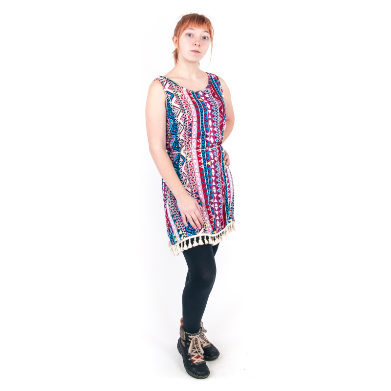 Mají geometrické tvary a širší ramínka. Mají v pase tenký provázek na stažení a spodní lem zdobený třásněmi. Mají příjemný materiál (viskóza) a hravé letní barvy. Šaty Sunee 04 mají chybějící kousek, který vám během parných dní chybí k naprosté neodolatelnosti.