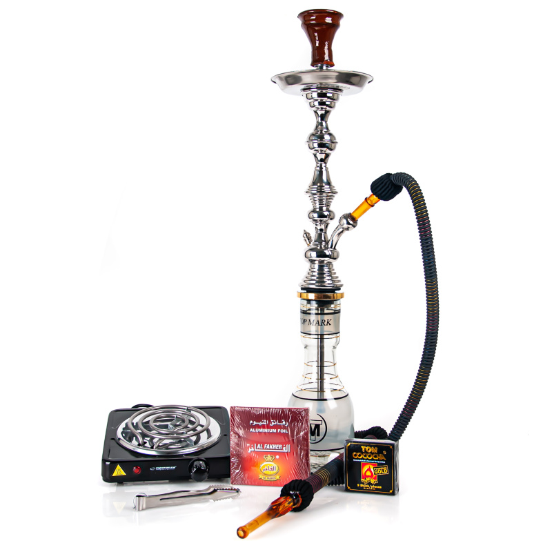 - Vodní dýmka Top Mark Fateh 30/1 černá (včetně korunky, hadice, kleští na uhlíky, těsnění a čistící štětky)