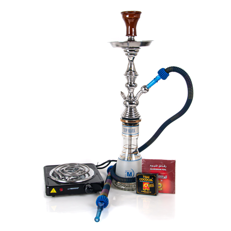- Vodní dýmku Top Mark Heket 65 modrá (včetně korunky, hadice, kleští na uhlíky, těsnění a čistící štětky)