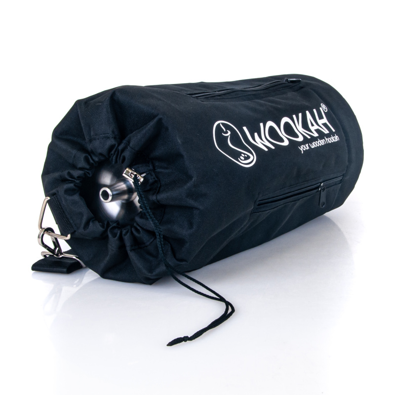Sbalte si dýmku na cesty. Jednoduchý batoh Shisha Bag Wookah se stahovací šňůrkou a popruhem přes rameno se k tomu bude skvěle hodit. Na přední straně má dvě kapsy na zip pro uložení dalšího příslušenství a je zdobený logem. Tak hurá za dobrodružstvím!