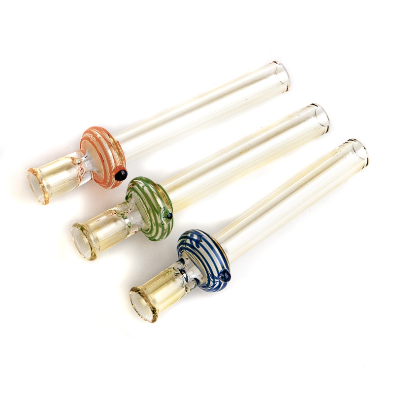Výborná skleněnka z odolného borosilikátového skla pyrex. Skleněnka má za kotlíkem bublinu s turbem zdobenou barevnými proužky.