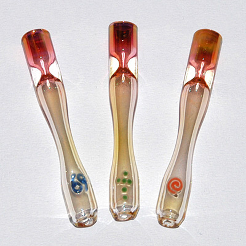 Výborná skleněnka z borosilikátového skla se zúženým náustkem a kotlíkem. Skleněnka je zbarvená do růžova a náustek je ozdoben malým barevným symbolem