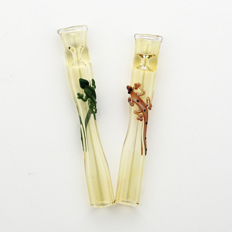 Výborná skleněnka z borosilikátového skla s rozšířeným kotlíkem zúženým náustkem. Na skleněnce je zdobení v podobě barevné ještěrky