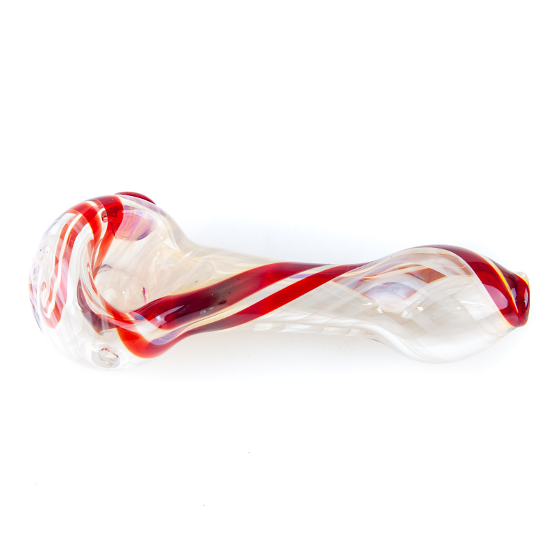 Perfektní šlukovka z odolného borosilikátového skla pyrex s prodlouženým náustkem a bočním turbem. Tato dýmka mléčné barvy je zdobená červenými proužky.