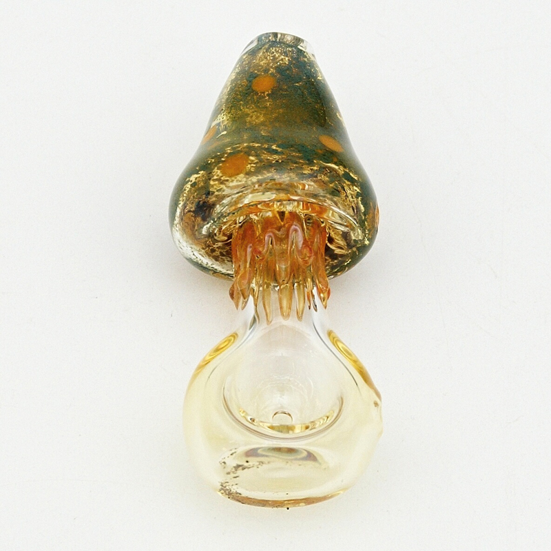 Perfektně do ruky padnoucí šlukovka z odolného borosilikátového skla pyrex s bočním turbem. Dýmka je celá stylizována do tvaru muchomůrky.