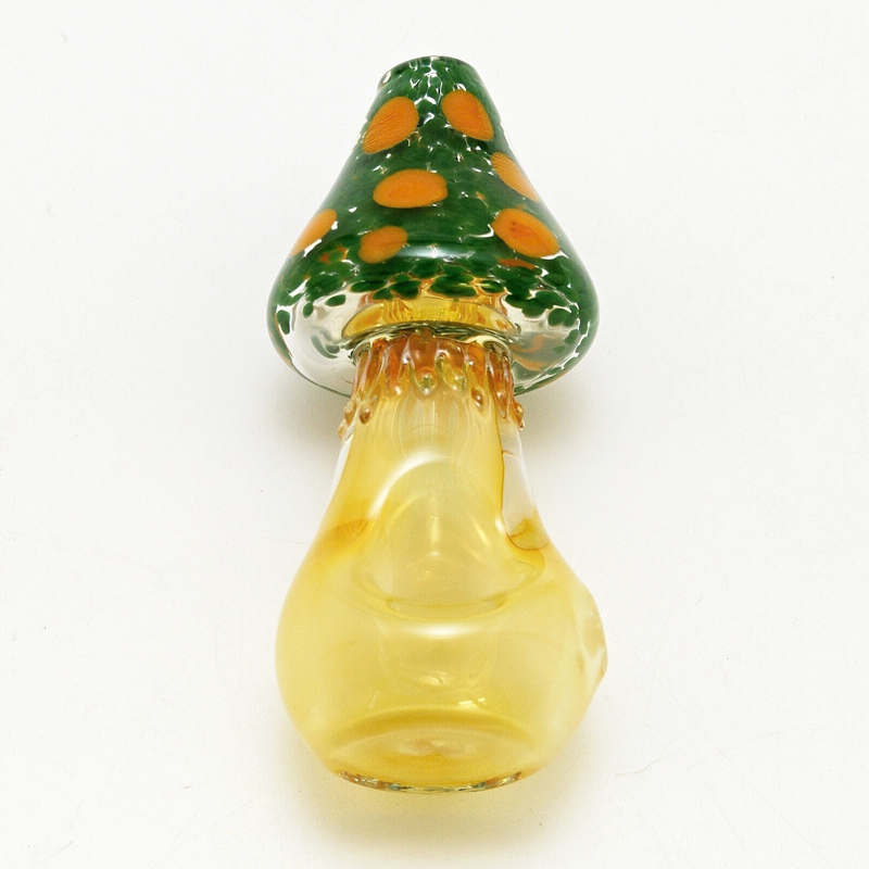 Perfektně do ruky padnoucí masivní šlukovka z odolného borosilikátového skla pyrex s bočním turbem. Dýmka je celá stylizována do tvaru muchomůrky.