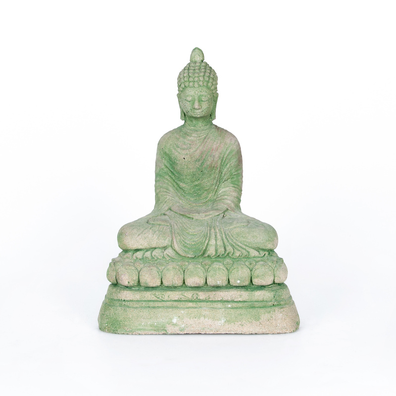 Soška znázorňující meditujícího Buddhu vyrobená z betonu je ideální do venkovních prostor. Buddha umístěný na balkoně, terase nebo zahradě, směřující ke dveřím, bude podle zásad feng-shui přinášet do vašeho domova příznivou energii.