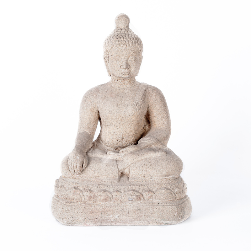 Soška znázorňující osvíceného Buddhu vyrobená z betonu je ideální do venkovních prostor. Buddha umístěný na balkoně, terase nebo zahradě, směřující ke dveřím, bude podle zásad feng-shui přinášet do vašeho domova příznivou energii.