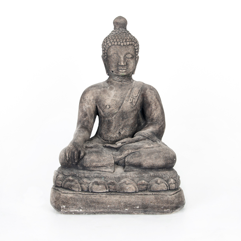 Soška znázorňující osvíceného Buddhu vyrobená z betonu je ideální do venkovních prostor. Buddha umístěný na balkoně, terase nebo zahradě, směřující ke dveřím, bude podle zásad feng-shui přinášet do vašeho domova příznivou energii.