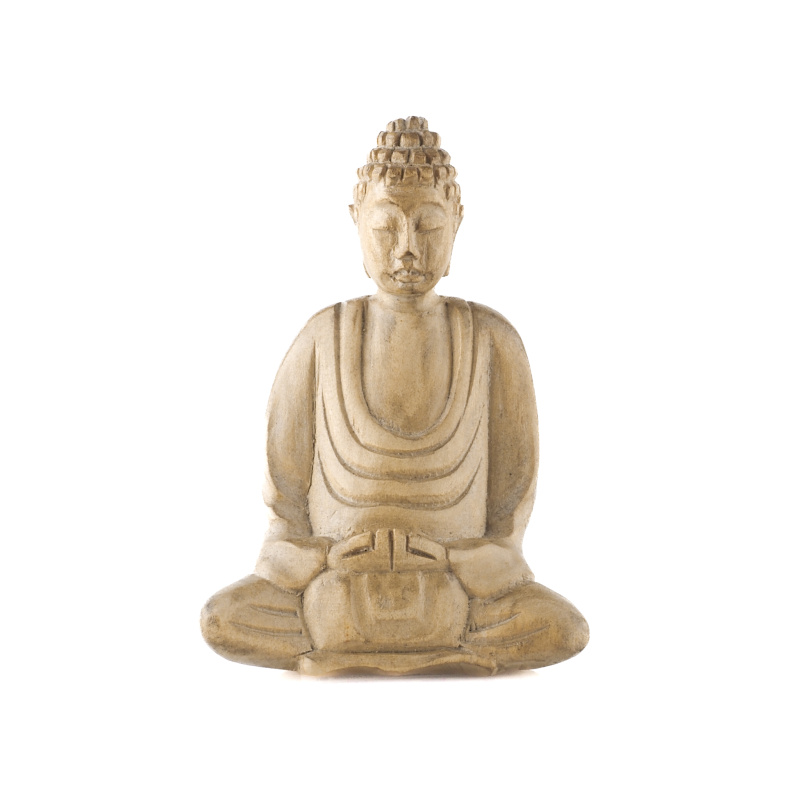 Dřevěné sochy Buddhy zaujímají v buddhistickém umění zvláštní místo. Vyřezané ze štědrosti přírody vyzařují teplo a klid. Forma soch, držení těla a gesta rukou, znamé jako mudry, mají specifické významy. Pozice vsedě se složenýma nohama (padmasana) je základní meditační polohou a vyjadřuje vnitřní mír a osvícení. Symbolickou váhu má i samotný materiál - dřevo. V mnoha kulturách představuje růst, transformaci a spojení s přírodou. Přirozené nedokonalosti dodávají každé soše charakter a osobitost.