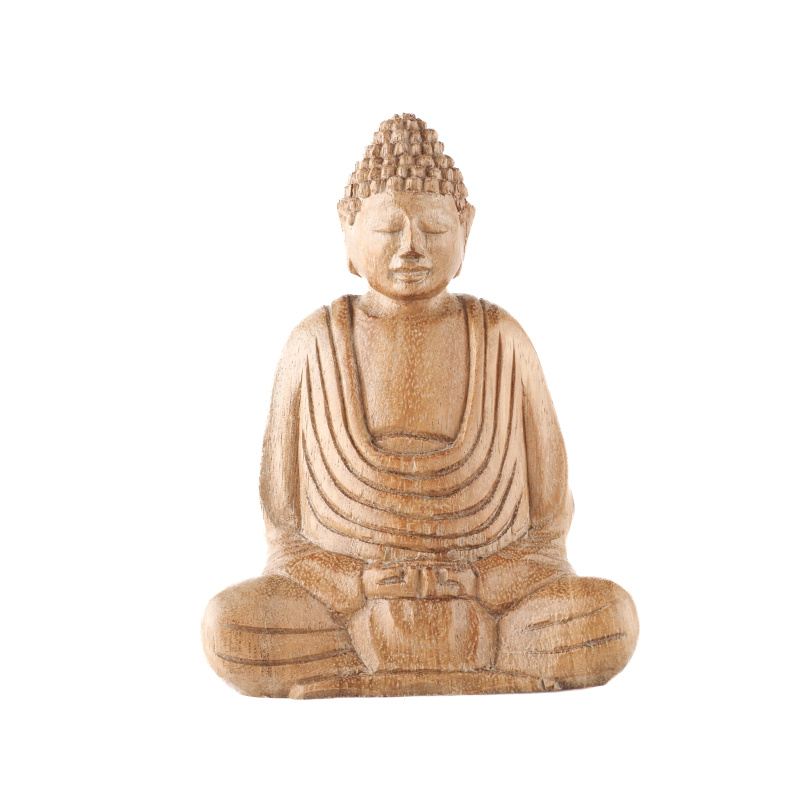 Dřevěné sochy Buddhy zaujímají v buddhistickém umění zvláštní místo. Vyřezané ze štědrosti přírody vyzařují teplo a klid. Forma soch, držení těla a gesta rukou, znamé jako mudry, mají specifické významy. Pozice vsedě se složenýma nohama (padmasana) je základní meditační polohou a vyjadřuje vnitřní mír a osvícení. Symbolickou váhu má i samotný materiál - dřevo. V mnoha kulturách představuje růst, transformaci a spojení s přírodou. Přirozené nedokonalosti dodávají každé soše charakter a osobitost.