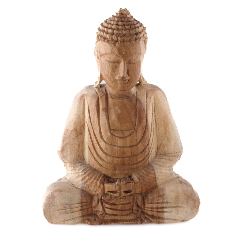 Dřevěné sochy Buddhy zaujímají v buddhistickém umění zvláštní místo. Vyřezané ze štědrosti přírody vyzařují teplo a klid. Forma soch, držení těla a gesta rukou, znamé jako mudry, mají specifické významy. Pozice vsedě se složenýma nohama (padmasana) je základní meditační polohou a vyjadřuje vnitřní mír a osvícení. Symbolickou váhu má i samotný materiál - dřevo. V mnoha kulturách představuje růst, transformaci a spojení s přírodou. Přirozené nedokonalosti dodávají každé soše charakter a osobitost.