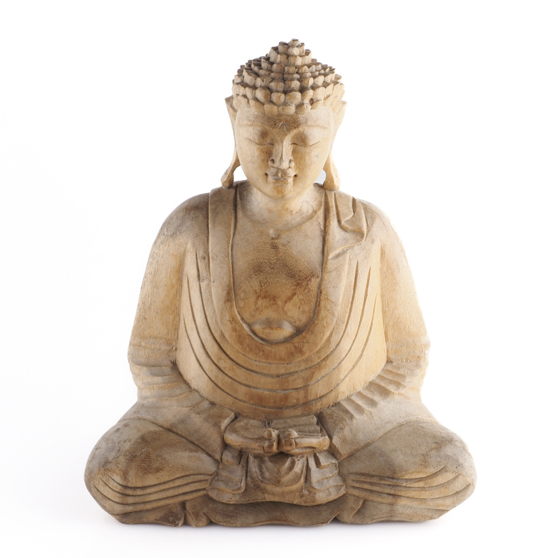 Dřevěné sochy Buddhy zaujímají v buddhistickém umění zvláštní místo. Vyřezané ze štědrosti přírody vyzařují teplo a klid. Forma soch, držení těla a gesta rukou, znamé jako mudry, mají specifické významy. Pozice vsedě se složenýma nohama (padmasana) je základní meditační polohou a vyjadřuje vnitřní mír a osvícení. Symbolickou váhu má i samotný materiál - dřevo. V mnoha kulturách představuje růst, transformaci a spojení s přírodou. Přirozené nedokonalosti dodávají každé soše charakter a osobitost.