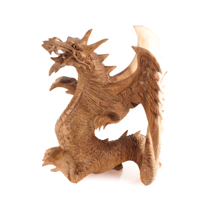 Drak je v mnoha tradičních kulturách považován za posvátné zvíře. Dle legendy drak ochraňoval ostrov Bali před vetřelci a nebezpečím. Motiv draka vyjadřuje sílu, odvahu, prosperitu a štěstí. Věří se, že drak je strážcem bohů a oddaně chrání posvátnost domova. Symbolickou váhu má i samotný materiál - dřevo. V mnoha kulturách představuje růst, transformaci a spojení s přírodou. Přirozené nedokonalosti dodávají každé soše charakter a osobitost.