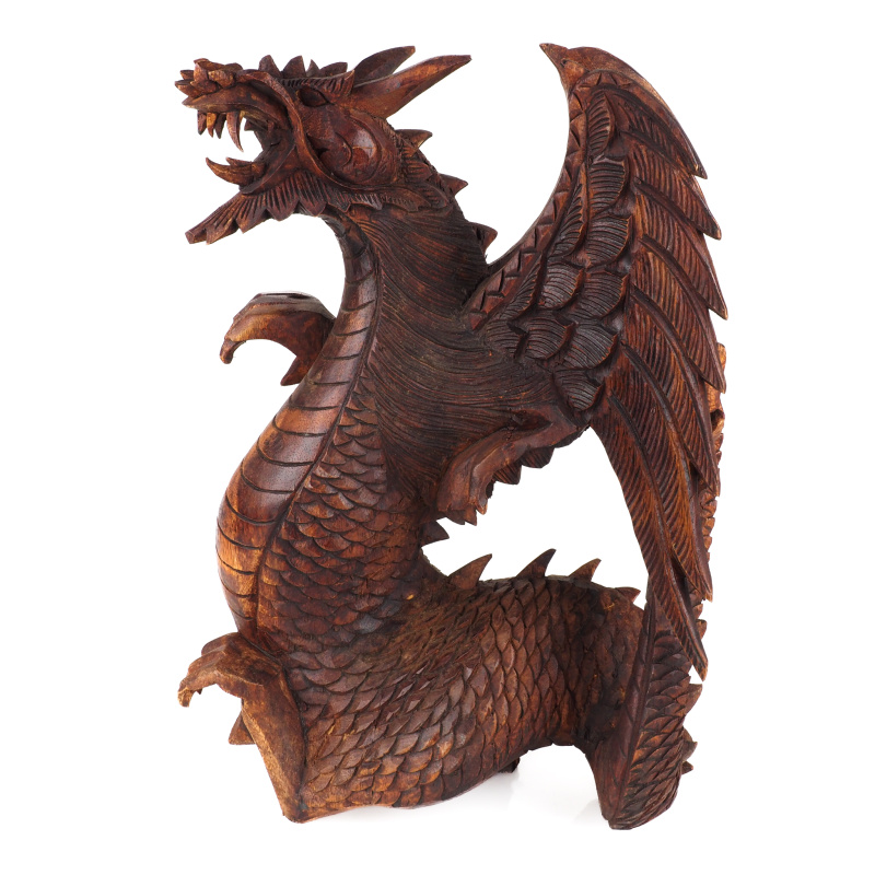 Drak je v mnoha tradičních kulturách považován za posvátné zvíře. Dle legendy drak ochraňoval ostrov Bali před vetřelci a nebezpečím. Motiv draka vyjadřuje sílu, odvahu, prosperitu a štěstí. Věří se, že drak je strážcem bohů a oddaně chrání posvátnost domova. Symbolickou váhu má i samotný materiál - dřevo. V mnoha kulturách představuje růst, transformaci a spojení s přírodou. Přirozené nedokonalosti dodávají každé soše charakter a osobitost.