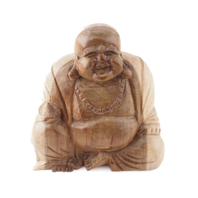 Popis produktu Soška dřevo Happy Buddha 15 cm světlá