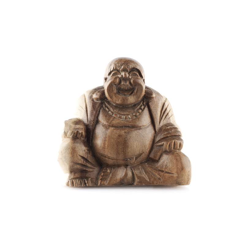 Popis produktu Soška dřevo Happy Buddha 9 cm světlá