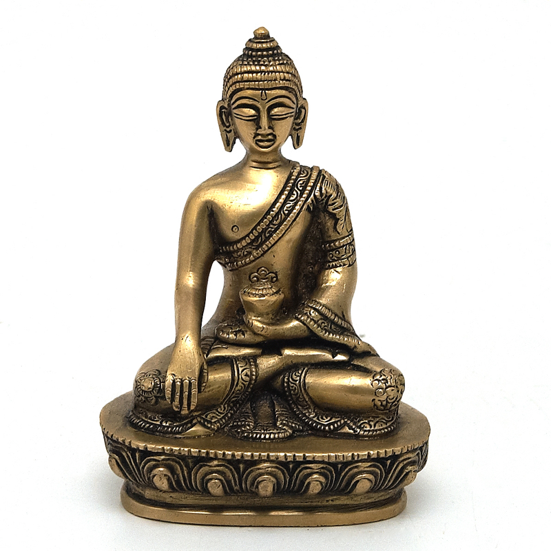 Buddha bývá zobrazován s oholenou hlavou, nebo nakrátko ostříhanými vlasy, někdy s korunou. Jeho barvou je zlatá.