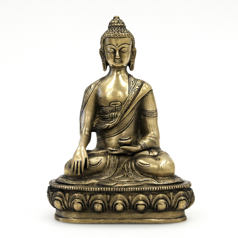 Buddha bývá zobrazován s oholenou hlavou, nebo nakrátko ostříhanými vlasy, někdy s korunou. Jeho barvou je zlatá.