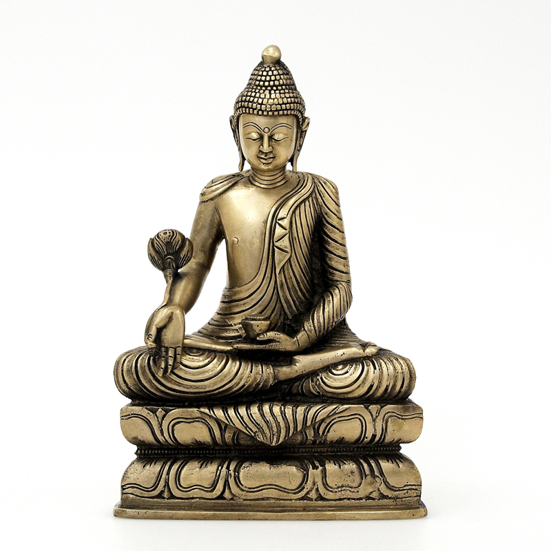 Buddha bývá zobrazován s oholenou hlavou, nebo nakrátko ostříhanými vlasy, někdy s korunou. Jeho barvou je zlatá.
