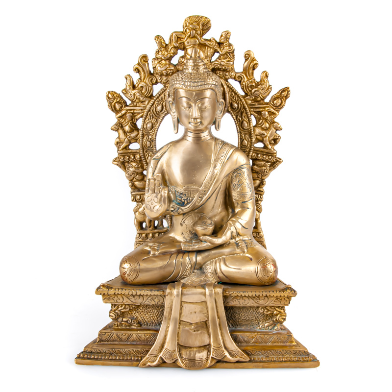 Buddha bývá zobrazován s oholenou hlavou, nebo nakrátko ostříhanými vlasy, někdy s korunou. Jeho barvou je zlatá.