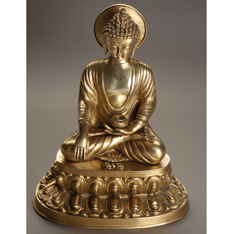 Buddha bývá zobrazován s oholenou hlavou, nebo nakrátko ostříhanými vlasy, někdy s korunou. Jeho barvou je zlatá.