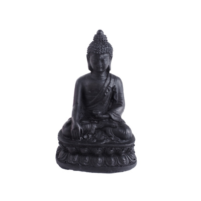 Socha znázorňuje sedícího Buddhy. Je odlita z resinu v černé barvě. Resin je směs polyesterové pryskyřice a plavené křídy. Výrobky z resinu jsou velice precizně vypracované s důrazem na každý detail.