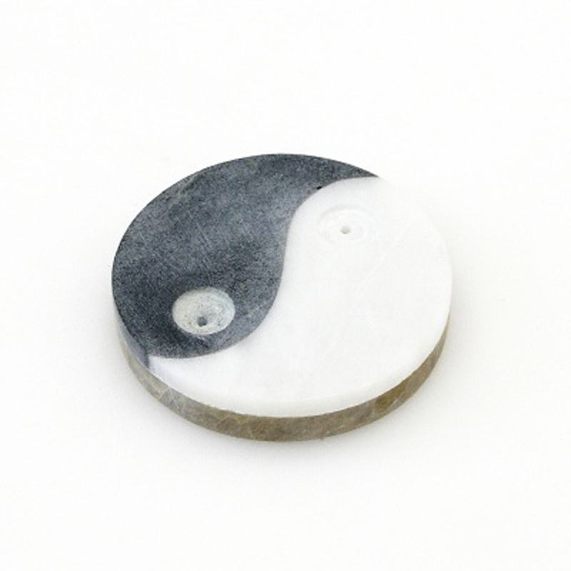 Stojánek na vonné tyčinky z mastku kombinuje dva barevné kameny tvořící znak Jin Jang