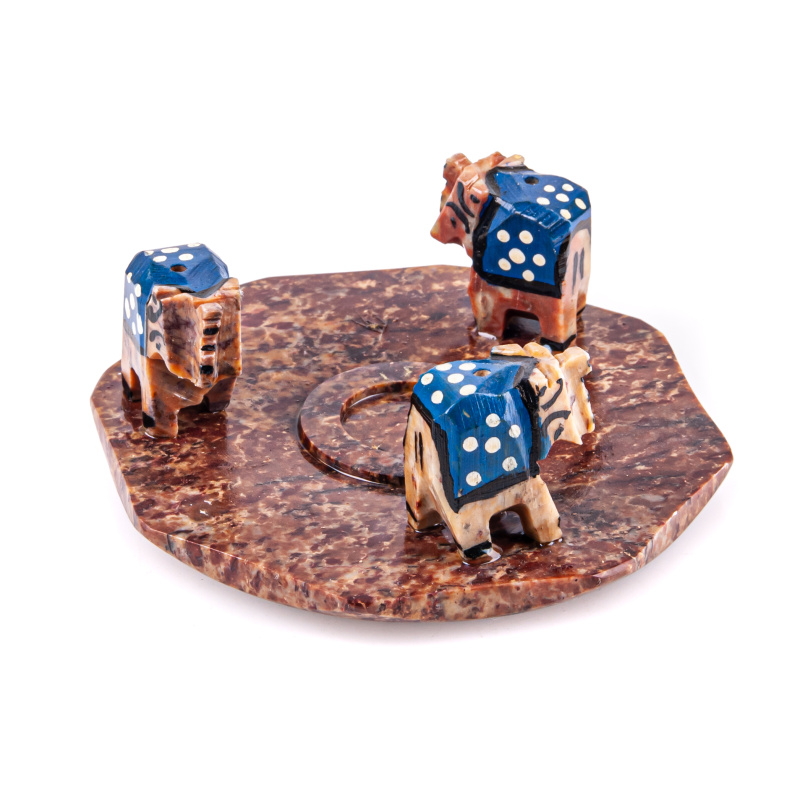 Stojánek se třemi indickými slony (4,5cm) je vyroben ve třech variantách - sloni v zeleném, sloni v černém a sloni ve světle zeleném.