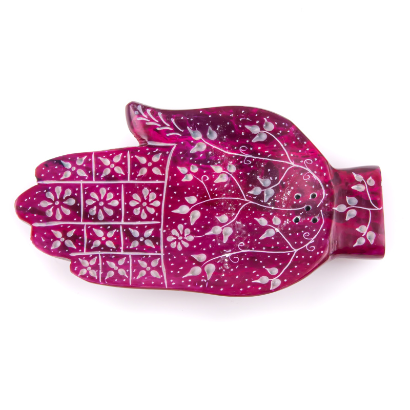 Kamenný stojánek ve tvaru ruky na vonné tyčinky a františky, barva růžová