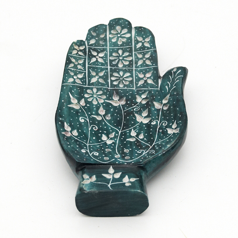 Kamenný stojánek ve tvaru ruky na vonné tyčinky a františky, barva zelená