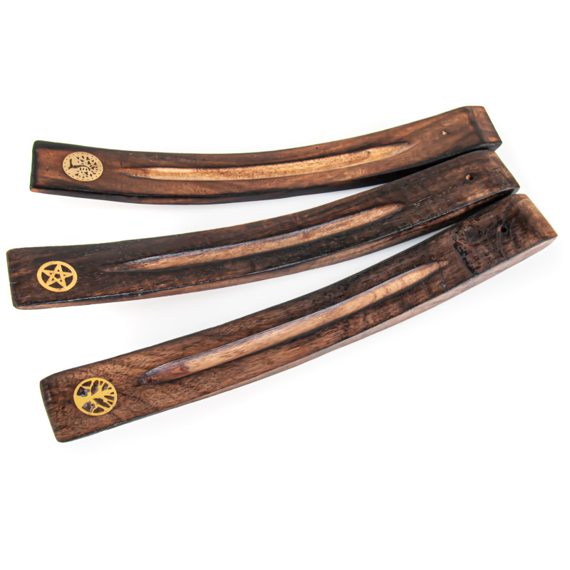 Pohyblivá kolíbka slouží jako stojánek na vonné tyčinky, ze dřeva hnědé barvy