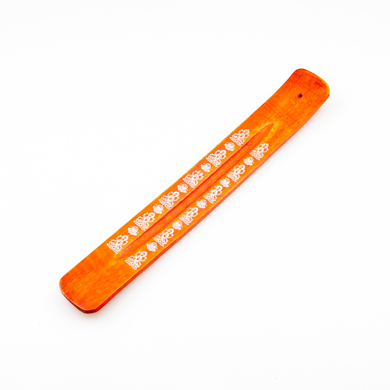 Stojánek na vonné tyčinky - lyže Hindu oranžová, zdobená potištěnými motivy.