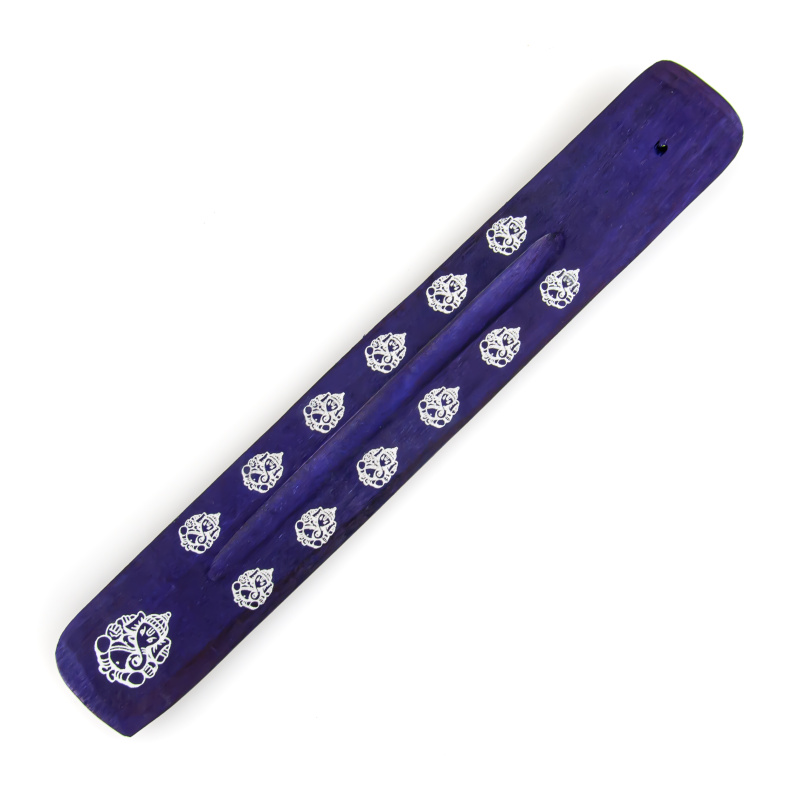 Stojánek na vonné tyčinky - lyže Manju Ganesha fialová, zdobená potištěnými motivy.