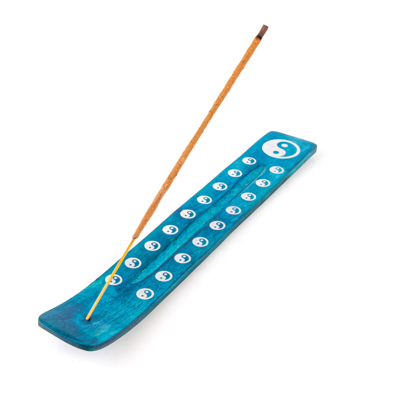 Stojánek na vonné tyčinky - lyže Manju Jin Jang modrá, zdobená potištěnými motivy.