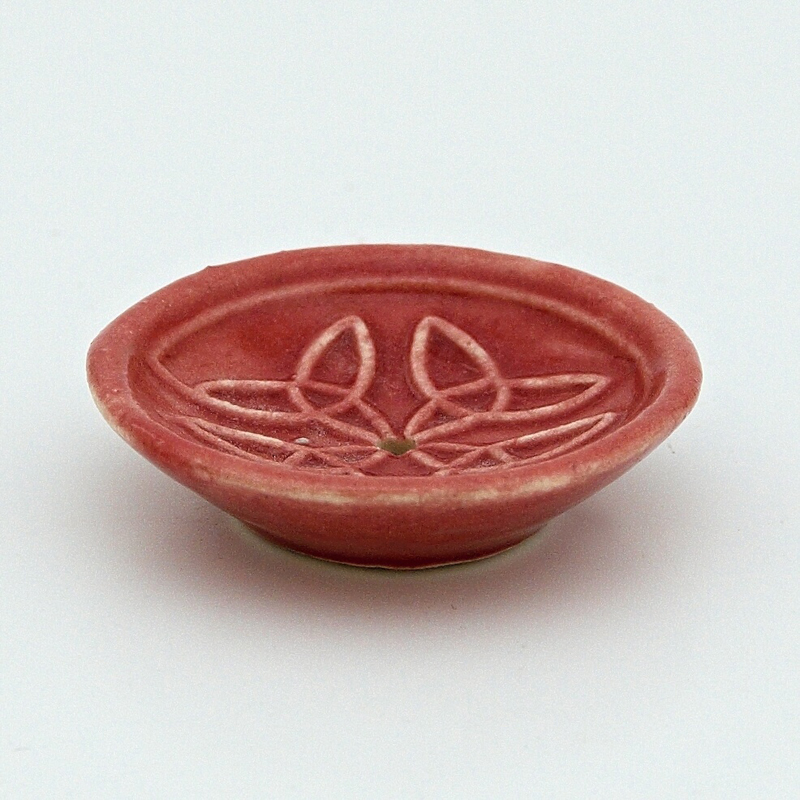 Menší stojánek - miska z glazované keramiky, na vonné tyčinky a františky, barva červená