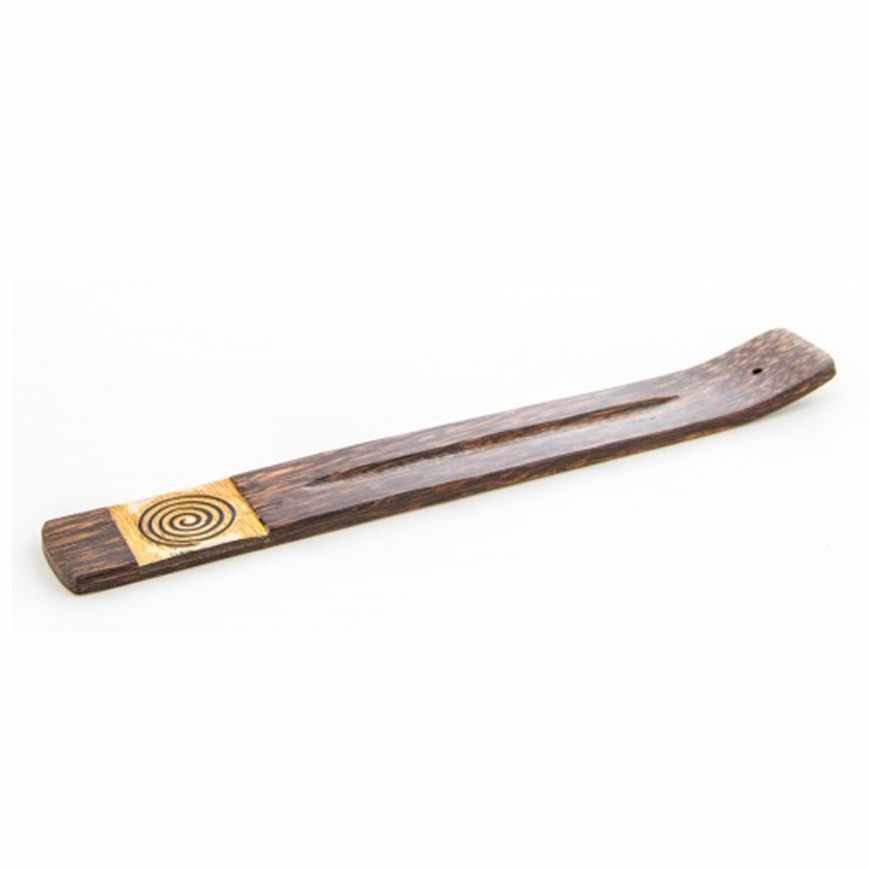 Ručně vyrobený stojánek na vonné tyčinky z palmového dřeva, potištěn motivem spirály.