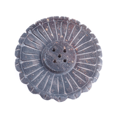Vyřezávaný kulatý stojánek na vonné tyčinky, ve tvaru slunce, z mastku, velikost 8 cm