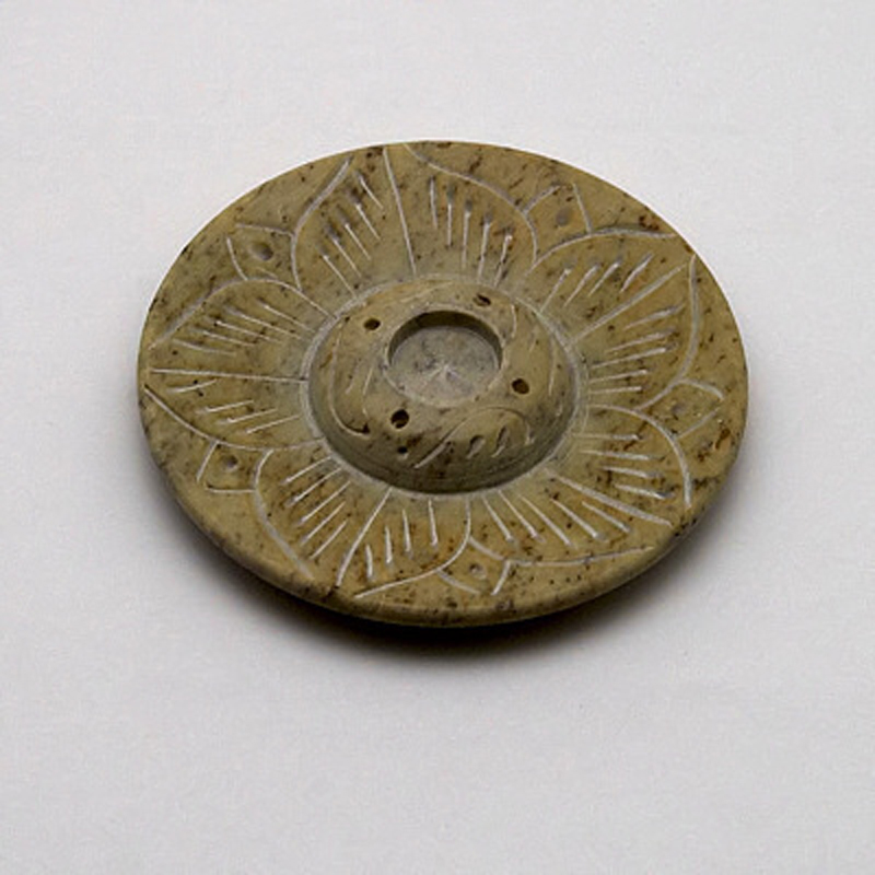 Stojánek je vyroben z přírodního kamene (mastku), barva stojánku se může odlišovat od fotky. Stojánek je vhodný na pálení vonných tyčinek i jehlánků.