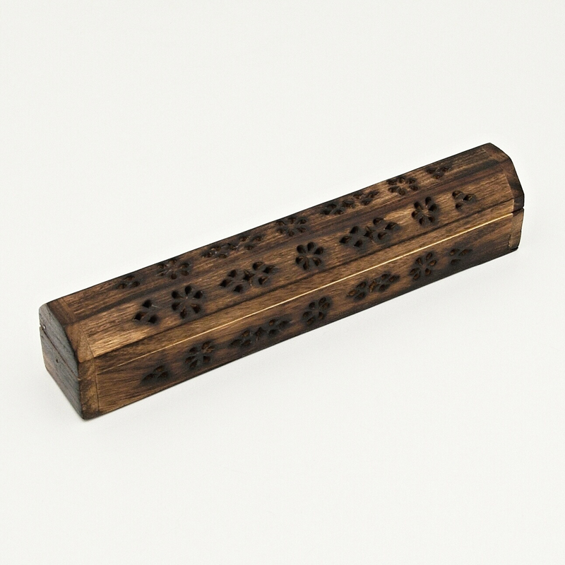 Vyřezávaná truhlička pro pálení vonných tyčinek a jehlánků, se zásobníkem na tyčinky