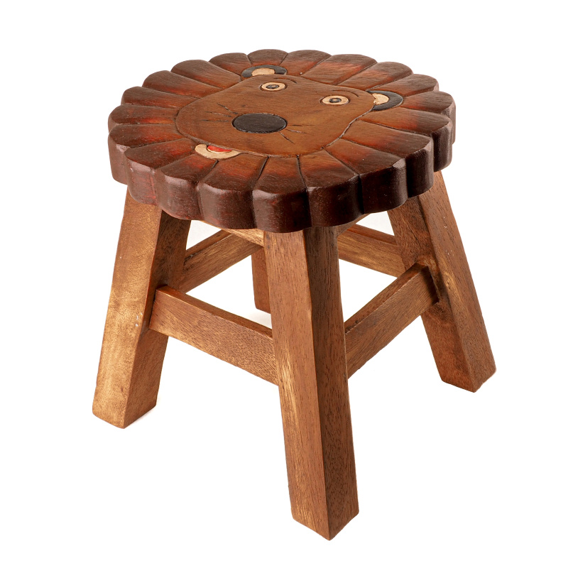 Ručně vyřezávaná stolička z exotického dřeva Decor Happy Lion