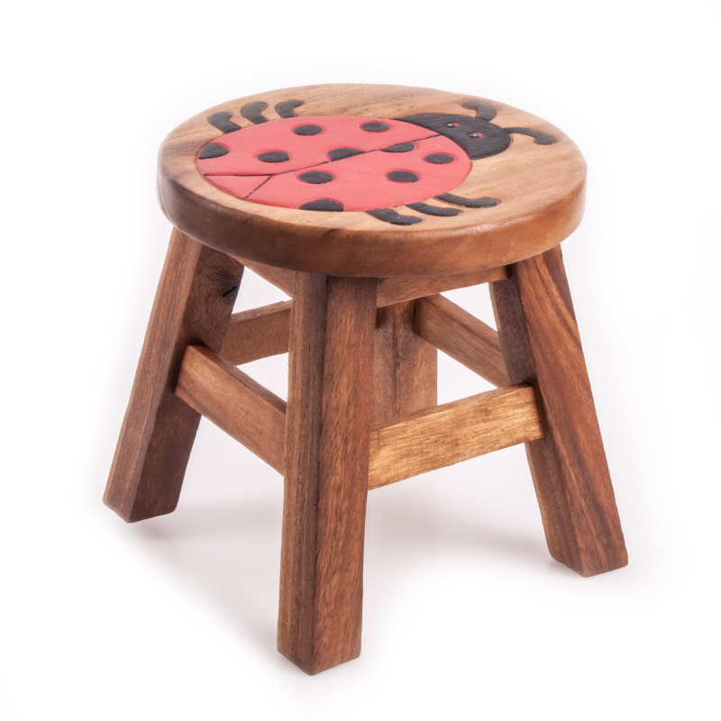 Ručně vyřezávaná stolička z exotického dřeva Decor Red Ladybug
