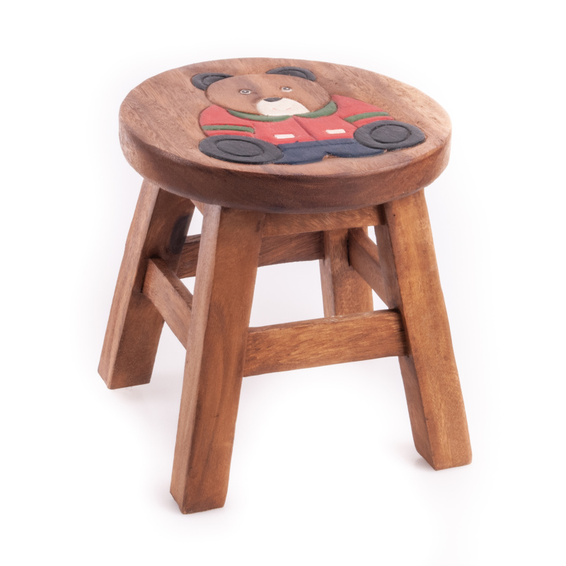 Dětská stolička s veselým motivem upoutá pozornost každého caparta. Stolička je ručně vyrobená z exotického dřeva a ošetřená přírodním olejem. Nábytek vyrábějí v Thajsku místní rodinná řezbářství, která mají mnohaletou historii. Produkty jsou zpracovány pro exportní účely, tudíž splňují přísná kritéria kvality po stránkách funkční, technické i designové.
