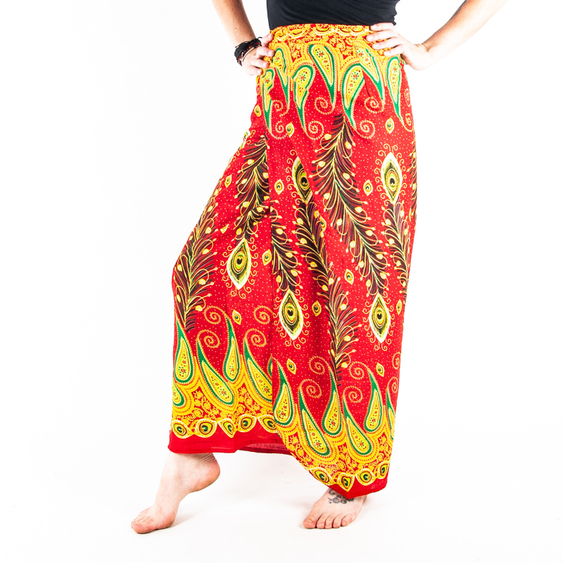 Bavlněná sukně Peacock Feathers v červené barvě s více možnostmi uvázání