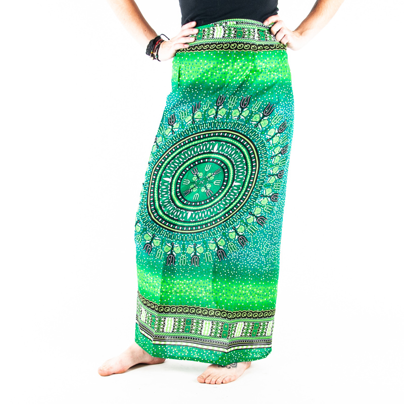 Bavlněná sukně Trident Mandala v zelené barvě s více možnostmi uvázání