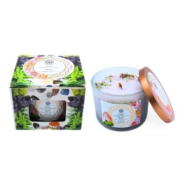 Vosková vonná svíčka harmonicky spojuje aromaterapeutické účinky podmanivé vůně růže a energetické působení růženínu.