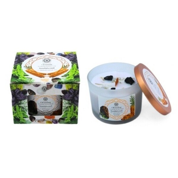 Vosková vonná svíčka harmonicky spojuje aromaterapeutické účinky posvátné vůně santalového dřeva a energetické působení černého turmalínu.
